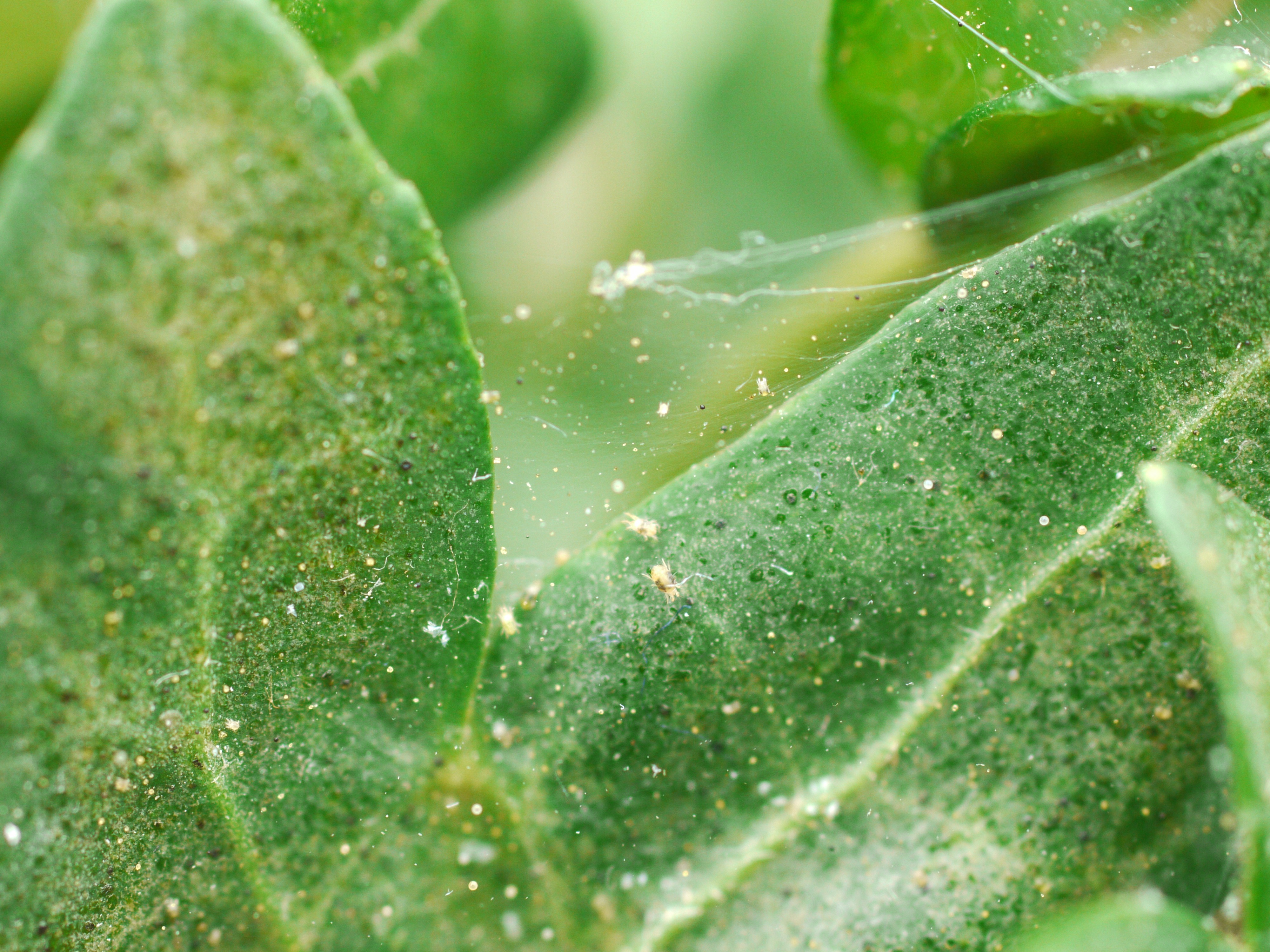 Spinnmilben sind häufige Pflanzenschädlinge, die vor allem unter trocken-warmen Bedingungen massenhaft auftreten können.