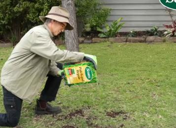 Following the instructions on the pack, spread Scotts 3.6L Patch and Repair or your chosen Seed & Feed evenly across the area. Water gently but thoroughly, then keep the patch consistently moist (not soggy) until the grass is well established. Try to keep little feet, kids or pets, off the spot while it’s growing.