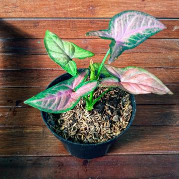 Charakteristisch sind die pfeilförmigen Blätter, die sich im Laufe des Wachstums verändern können. Junge Pflanzen wirken buschig und dicht, während ältere Exemplare längere Triebe ausbilden. Besonders attraktiv ist die große Sortenvielfalt: Von kräftigem Dunkelgrün über hellgrüne Nuancen bis hin zu weiß oder rosa panaschierten Varianten bietet das Syngonium für nahezu jeden Einrichtungsstil die passende Optik.