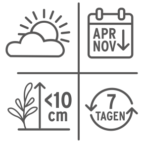 : Ab Frühjahr, bis 10 cm Unkrauthöhe.