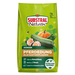 SUBSTRAL® Naturen® Pferdedung ist ein anwendungsfertiger Stallmist in Pellets. Durch seinen hohen Anteil an organischer Substanz und seine milde Düngewirkung ist der Pferdedung auch als Bodenaufbereiter und Startdünger bei der Neuanlage von Beeten, unter anderem auch Hochbeeten, bestens geeignet. Auch für Rasenflächen und bestehende Pflanzungen.