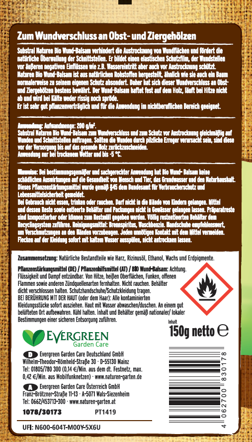 SUBSTRAL® Naturen® Wund-Balsam dient zum Wundverschluss an Obst und Ziergehölzen. Es verhindert die Austrocknung von Wundflächen und fördert die natürliche Überwallung der Schnittstellen. Der besonders elastischer Wundverschluss lässt sich einfach anwenden durch seine integrierte Streichbürste.