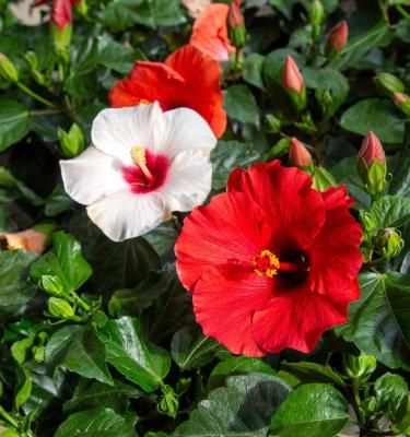 Les hibiscus d’intérieur, comme Hibiscus rosa-sinensis, aux feuilles persistantes et à la floraison prolongée, qui sauront apporter une touche tropicale à votre intérieur.