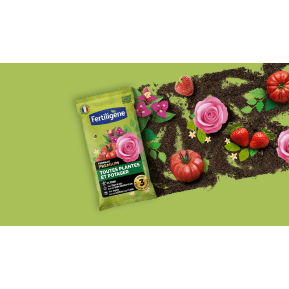 - pour un bon enracinement : aération du sol grâce aux fibres de bois stabilisées et aux écorces compostées, qui assurent un équilibre entre l'eau et l'air contenus dans le terre, pour des racines fortes et saines.