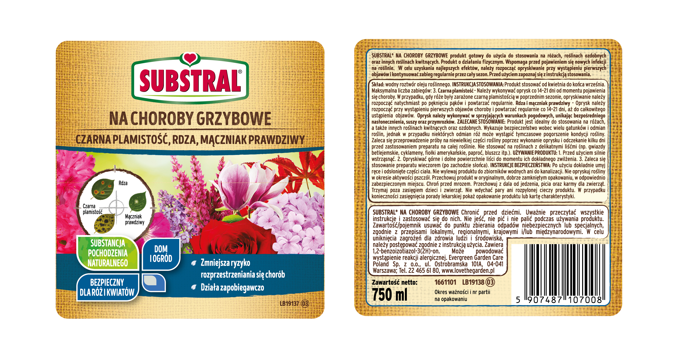 SUBSTRAL© Na Choroby Grzybowe to produkt gotowy do użycia do stosowania na różach, roślinach ozdobnych oraz innych roślinach kwitnących. Produkt tworzy na powierzchni rośliny fizyczną barierę, która niekorzystnie wpływa na rozwój zarodników. Wspomaga przed pojawieniem się nowych infekcji na roślinie. W celu uzyskania najlepszych efektów, należy rozpocząć opryskiwanie przy wystąpieniu pierwszych objawów i kontynuować zabieg regularnie przez cały sezon.