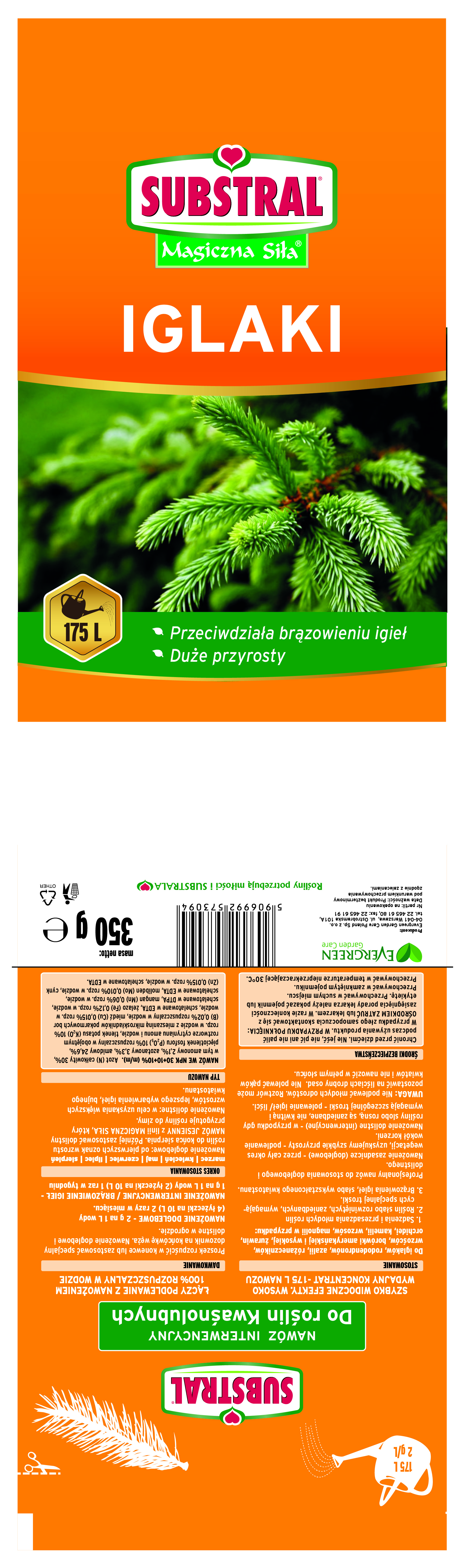 Nawóz Substral Magiczna Siła. Specjalistyczny nawóz interwencyjny do iglaków. Szybko zakwasza podłoże, powoduje duże przyrosty oraz przeciwdziała brązowieniu igieł. Wysoko skoncentrowany nawóz, dlatego wystarczy niewielka dawka. Bardzo dobrze przyswajany przez liście i korzenie. 100% rozpuszczalny w wodzie. Prosty w stosowaniu – łączy podlewanie z nawożeniem. Wysoka wydajność - dawka 1g na litr wody.