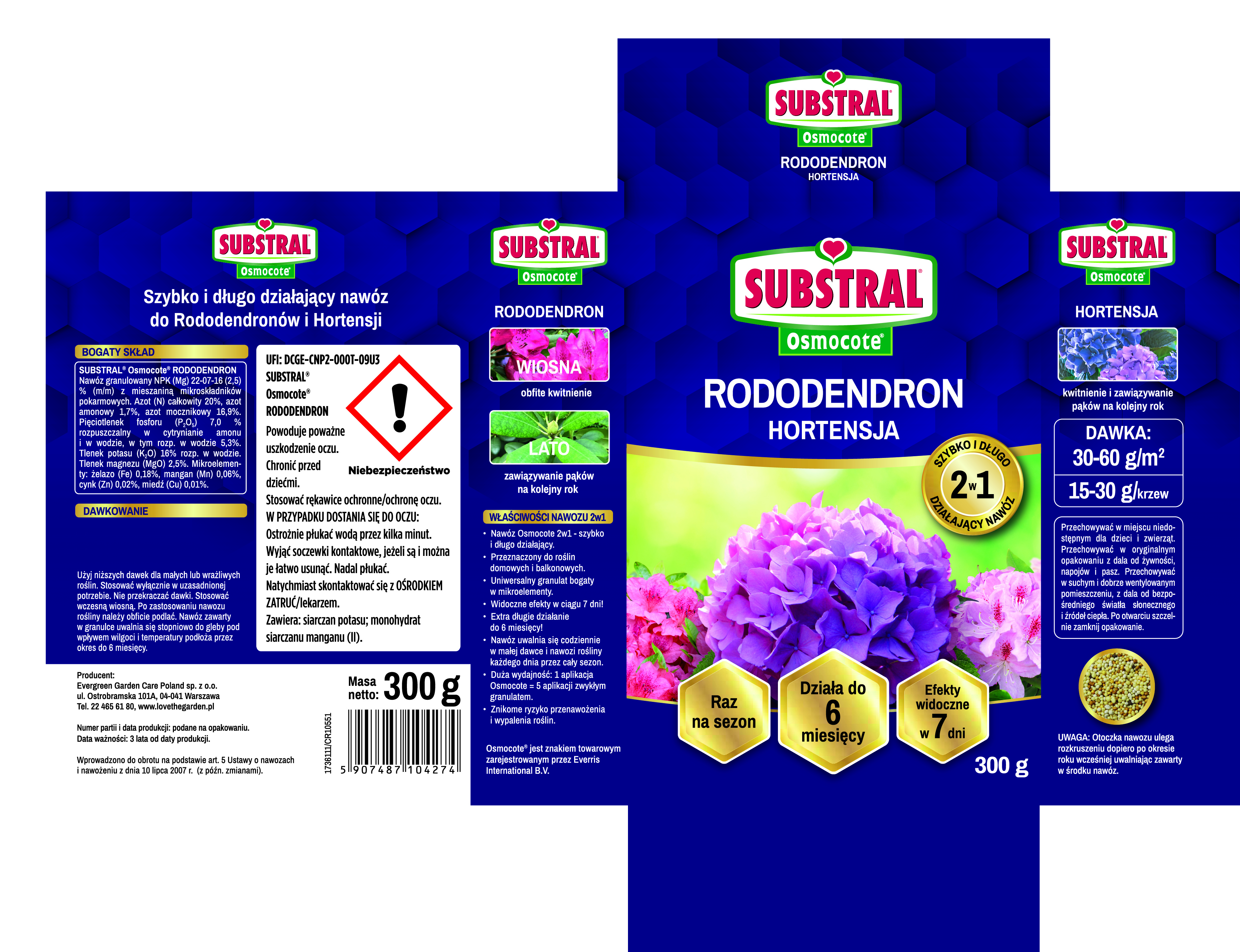 SUBSTRAL Osmocote 2w1 do Rododendronów i Hortensjiprzeznaczony jest do nawożenia rododendronów, azalii,hortensji oraz roślin kwaśnolubnych.